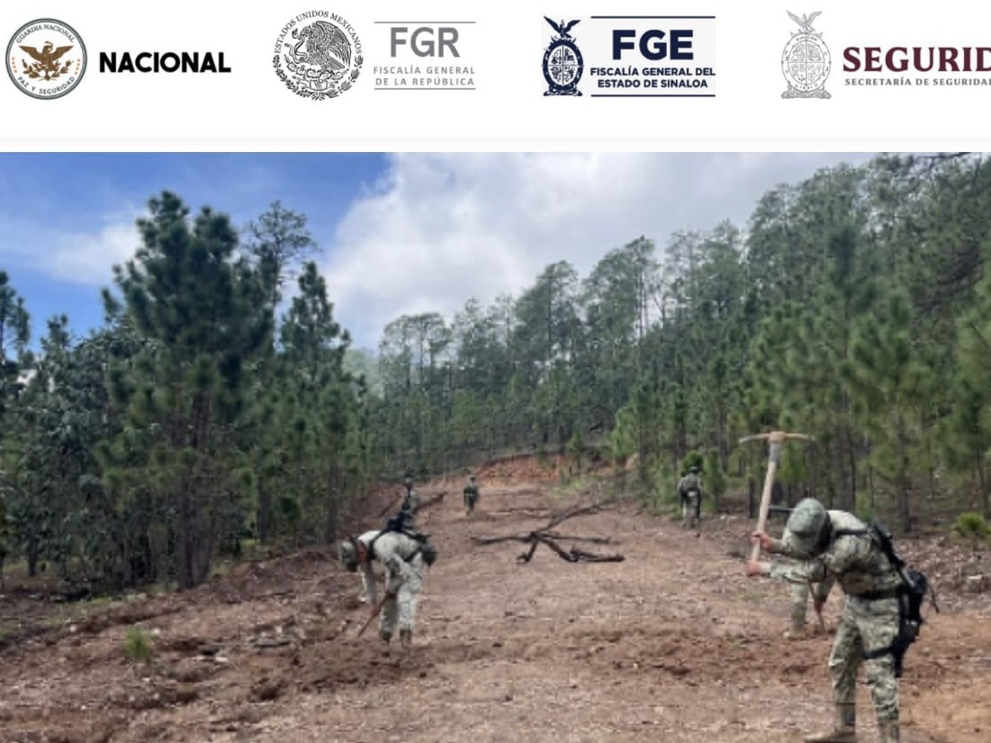 Culiacán, Sinaloa; septiembre 12 de 2025.- Personal del Ejército Mexicano, en coordinación con la Guardia Nacional, la Secretaría de Marina, la Secretaría de Seguridad y Protección Ciudadana, la Fiscalía General de la República, la Fiscalía General del Estado y la Secretaría de Seguridad Pública del Estado, a través de la Policía Estatal Preventiva, localizó e inhabilitó una pista de aterrizaje clandestina en Choix.