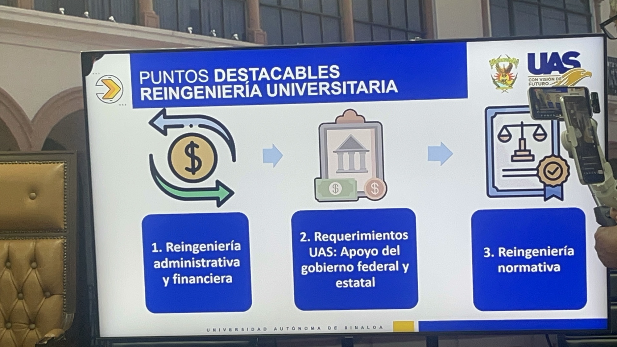 Culiacán, Sinaloa; septiembre 17 de 2025.- La Universidad Autónoma de Sinaloa (UAS) enfrenta un panorama complejo marcado por la insuficiencia estructural de recursos, un bajo subsidio por alumno y compromisos laborales derivados de la dinámica de jubilaciones. Ante este escenario, las autoridades universitarias trabajan en un plan de reingeniería financiera que permita mantener la estabilidad institucional, la calidad en la formación de profesionistas y el desarrollo de investigaciones estratégicas para la competitividad del estado.