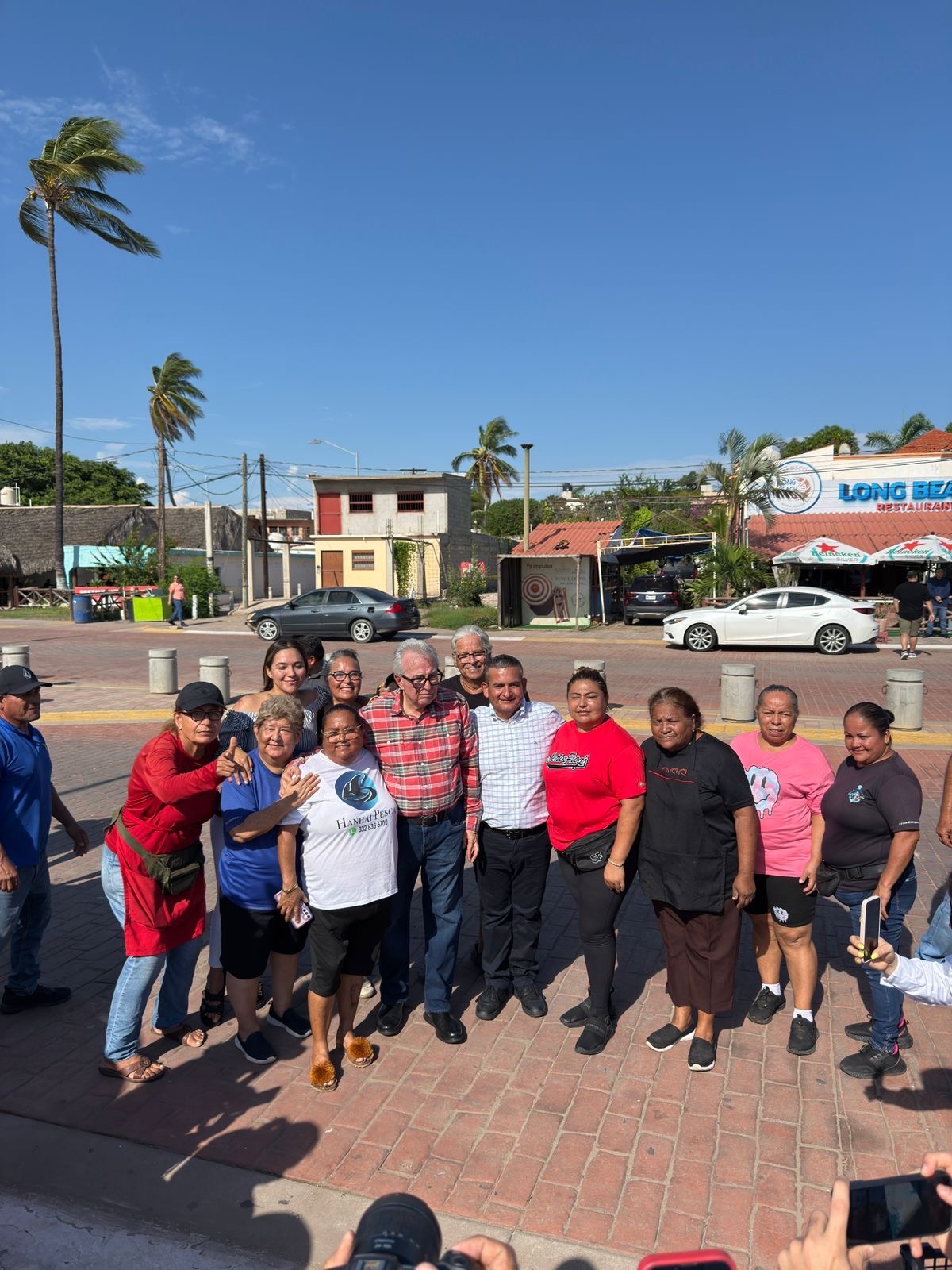 Acompañado del alcalde Jorge Bojórquez Berrelleza, el mandatario estatal se comprometió con los vendedores y restauranteros a reforzar la seguridad para visitantes y pobladores de este importante destino turístico, comprometiéndose a retomar el tema de la seguridad en las carreteras, mañana en la Mesa de Seguridad Estatal.