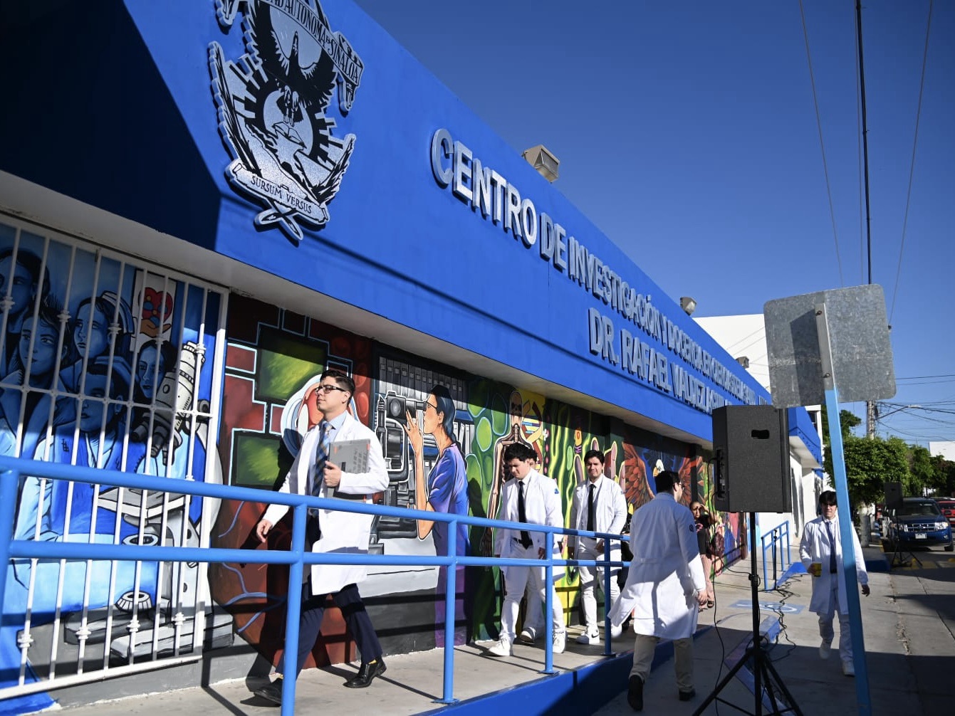 Culiacán, Sinaloa; octubre 28 de 2025.- Como un homenaje al esfuerzo colectivo del personal de salud, investigadores, estudiantes y docentes, se inauguró el mural “Manos que curan, mentes que enseñan”, en la fachada del Centro de Investigación y Docencia en Ciencias de la Salud (CIDOCS) de la Universidad Autónoma de Sinaloa, con el apoyo de SUMA Sociedad Unida.