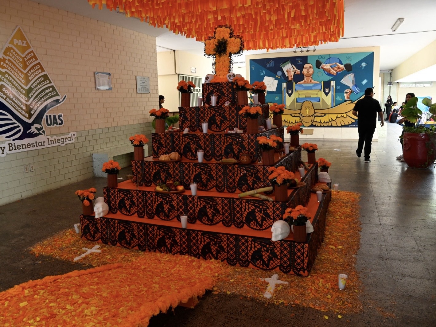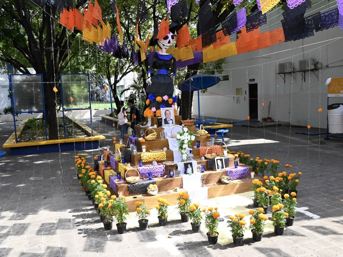 Desde temprano espacios universitarios como la Facultad de Contaduría y Administración se llenaron de flores de cempasúchil, papel picado y velas, en el que docentes, personal administrativo y estudiantes como Walter Félix participaron en la elaboración de altares y en la realización de actividades como bazares, presentaciones musicales y concursos de disfraces.