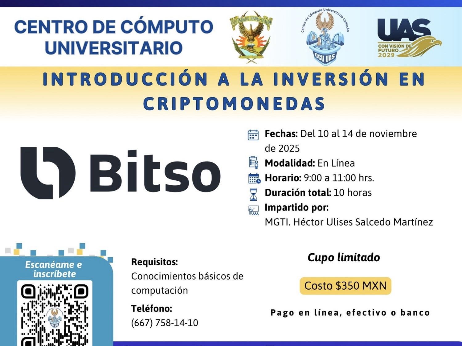 “Apegados a las instrucciones del Rector mirando hacia el futuro, donde él pide que se integren elementos como la Inteligencia Artificial, estamos renovando la plantilla para darle ese giro, los cursos que vamos a empezar a manejar son de temas como criptomonedas, los básicos que no pueden faltar que son el PowerPoint y Word, así como cursos de Community Mánager, que se van a estar actualizando”, refirió.