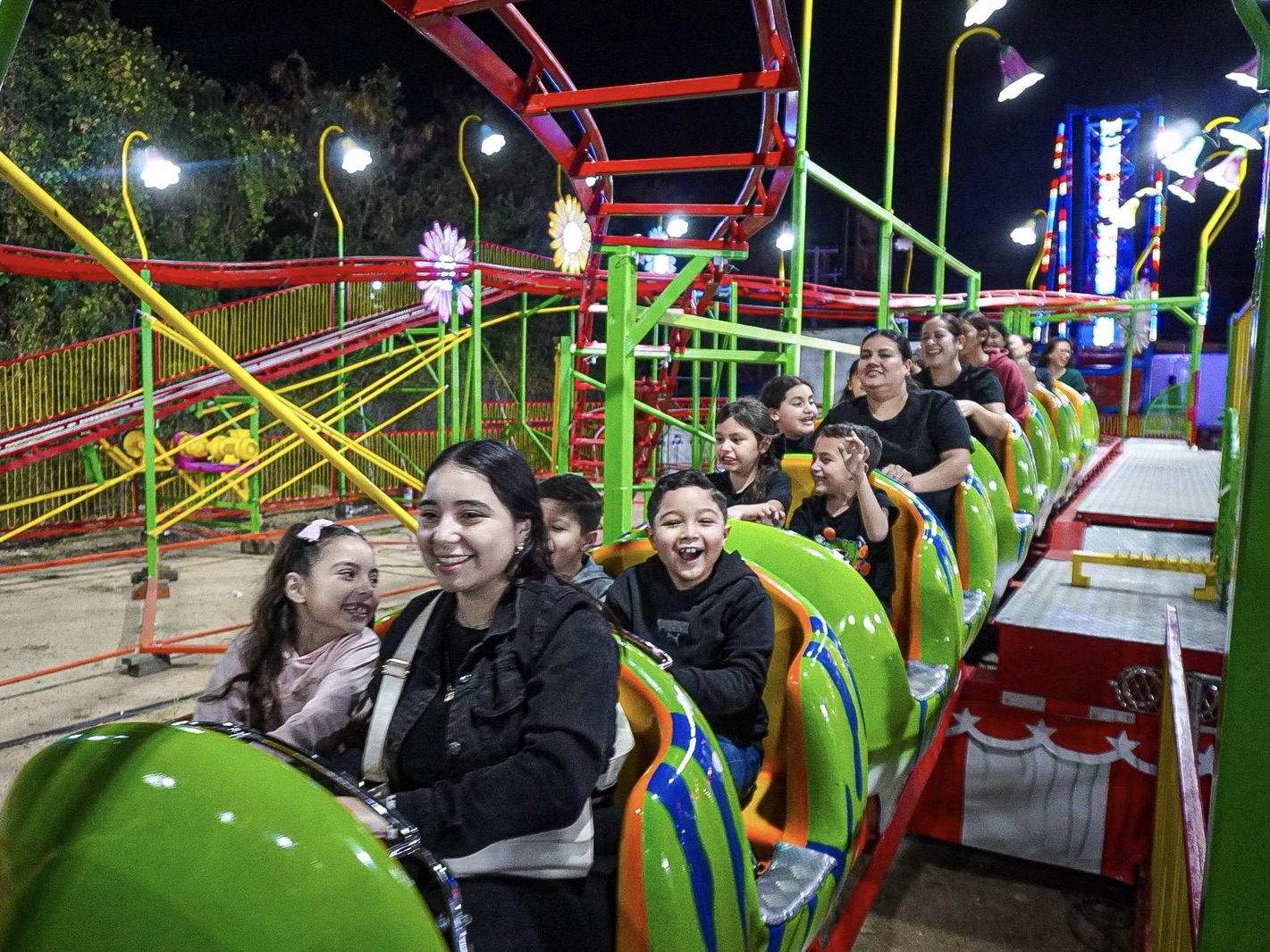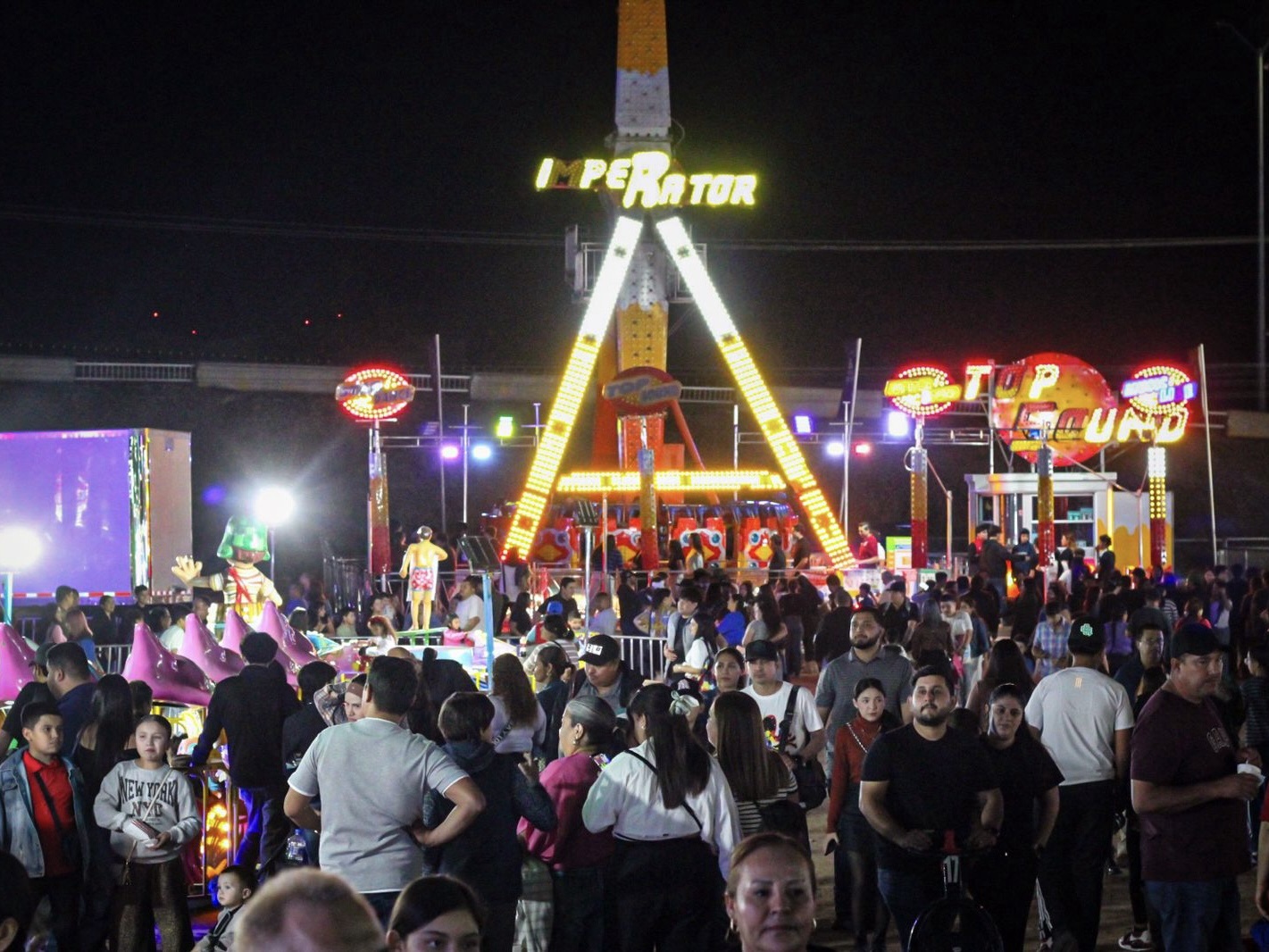 La diversión continuó en el área de juegos mecánicos, que registró un lleno total en atracciones como la montaña del gusano, carritos chocones, carrusel infantil, el tradicional martillo y la rueda de la fortuna, convirtiéndose en uno de los espacios más concurridos de la noche.