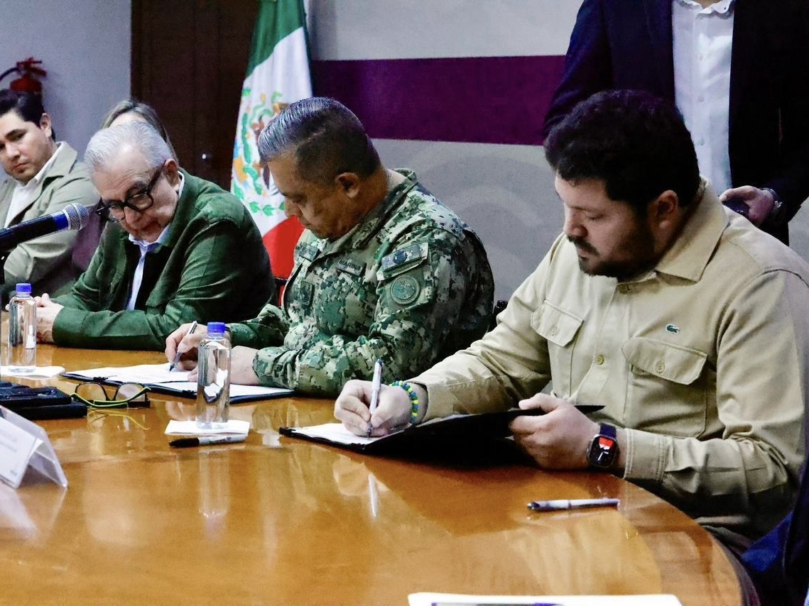 Culiacán, Sinaloa, a 13 de enero de 2026.- Para concretar el proyecto de la instalación de un Sector Naval en Nuevo Altata, en el municipio de Navolato, el gobernador Rubén Rocha Moya signó un acuerdo de donación de un predio con el comandante de la Cuarta Región Naval, vicealmirante José Daniel Reséndiz Sandoval, lo cual vendrá a dar mayor seguridad y confianza tanto a residentes como visitantes de este destino turístico, con la presencia permanente de mil 100 elementos de la Secretaría de Marina.