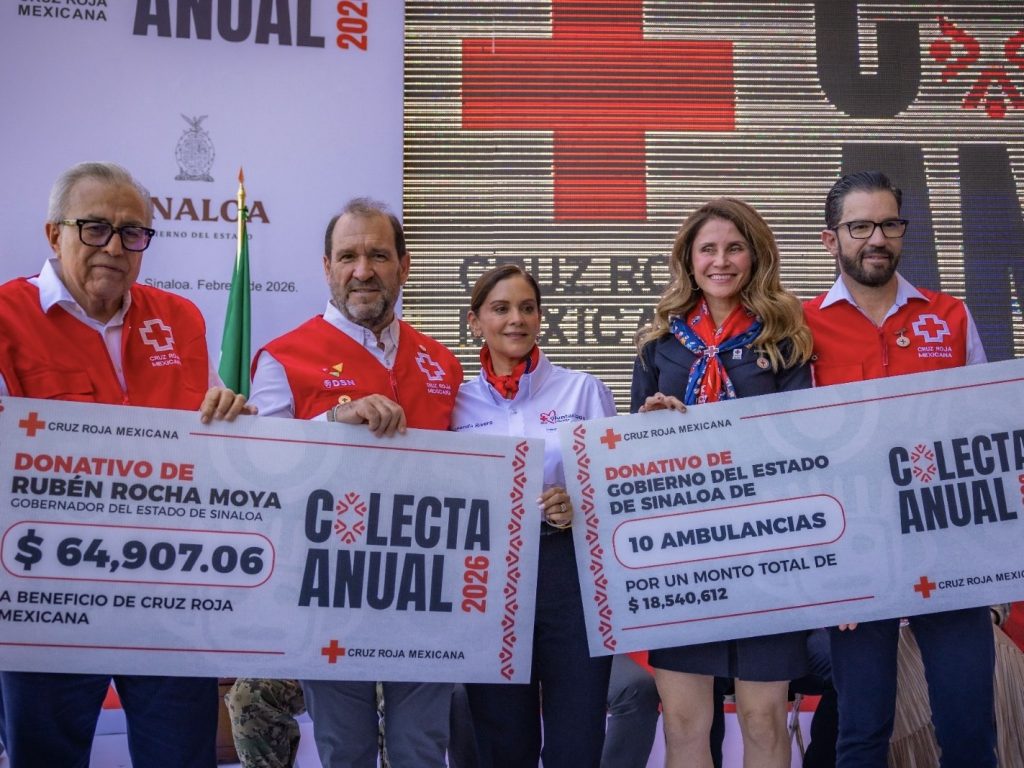 Culiacán, Sinaloa 23 de febrero de 2026.- Celebrando los 116 años de la fundación de la Cruz Roja Mexicana, el gobernador Rubén Rocha Moya, dio el banderazo de arranque de su colecta nacional 2026 de esta benemérita institución, la cual, mediante el slogan, “Esto que ves, lo hacemos juntos”, esperan recaudar la suma 45 millones de pesos en la entidad.