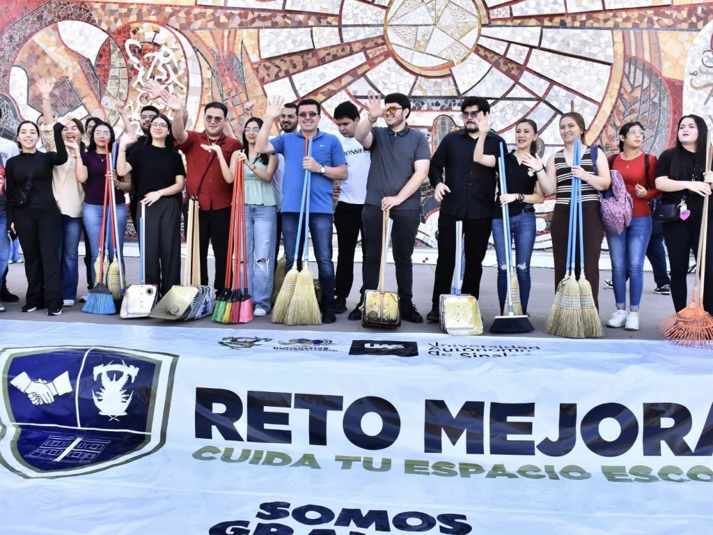 Culiacán, Sinaloa; abril 18 de 2026.- Al pie del emblemático mural “Irradiación para la Cultura y la Vida”, en Ciudad Universitaria, el Rector de la Universidad Autónoma de Sinaloa (UAS), doctor Jesús Madueña Molina —acompañado de la doctora Sofía Angulo de Madueña y la comunidad universitaria— inauguró las actividades del programa institucional “Reto Mejora: Cuida tu Espacio Universitario”.