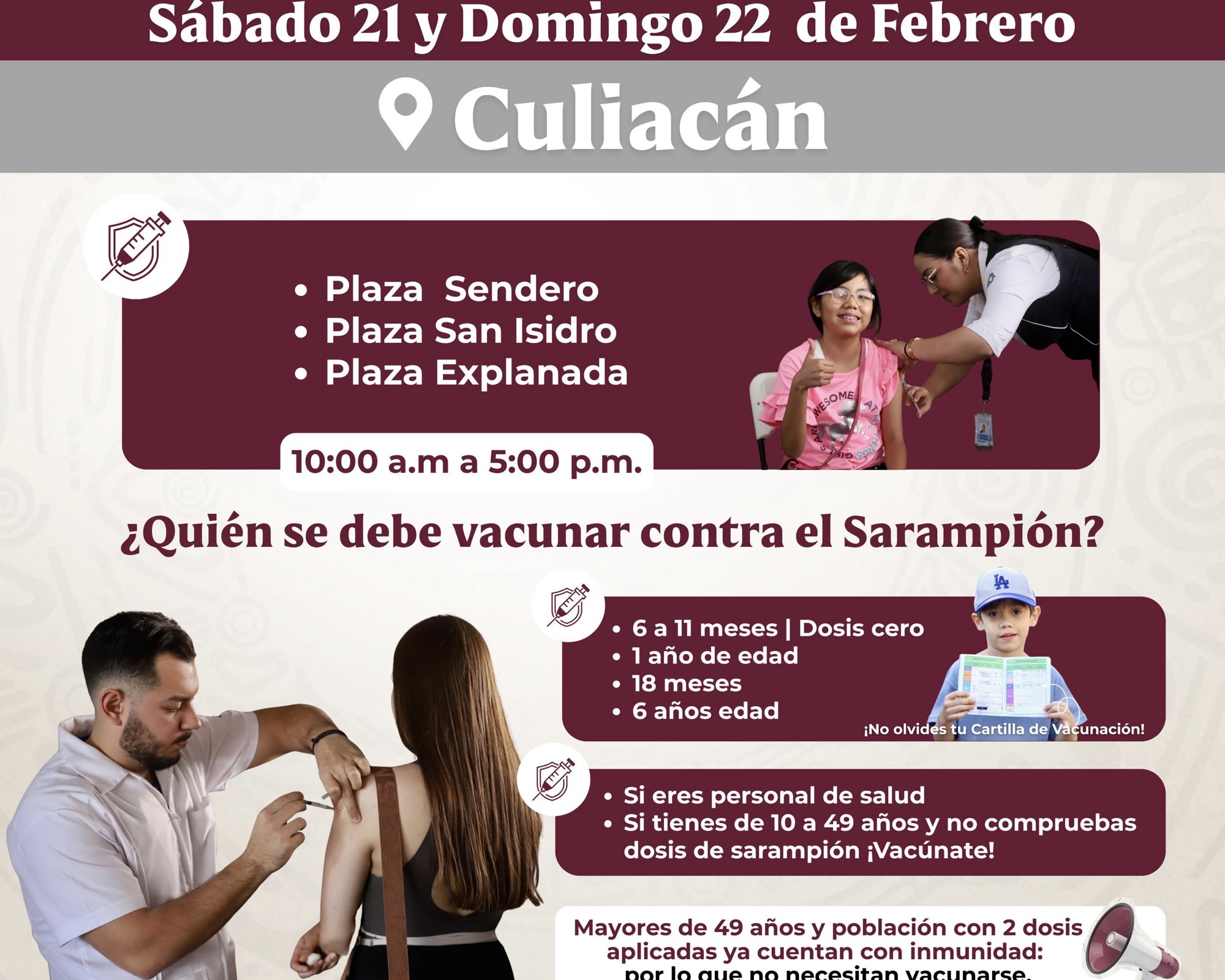 Culiacán, Sinaloa: febrero 19 de 2026.- La Secretaría de Salud informa a la población que, con el objetivo de fortalecer la protección contra el sarampión, se instalarán macrocentros de vacunación en distintos municipios del estado durante esta semana. Se exhorta a madres, padres de familia y población en general a acudir a los puntos de […]