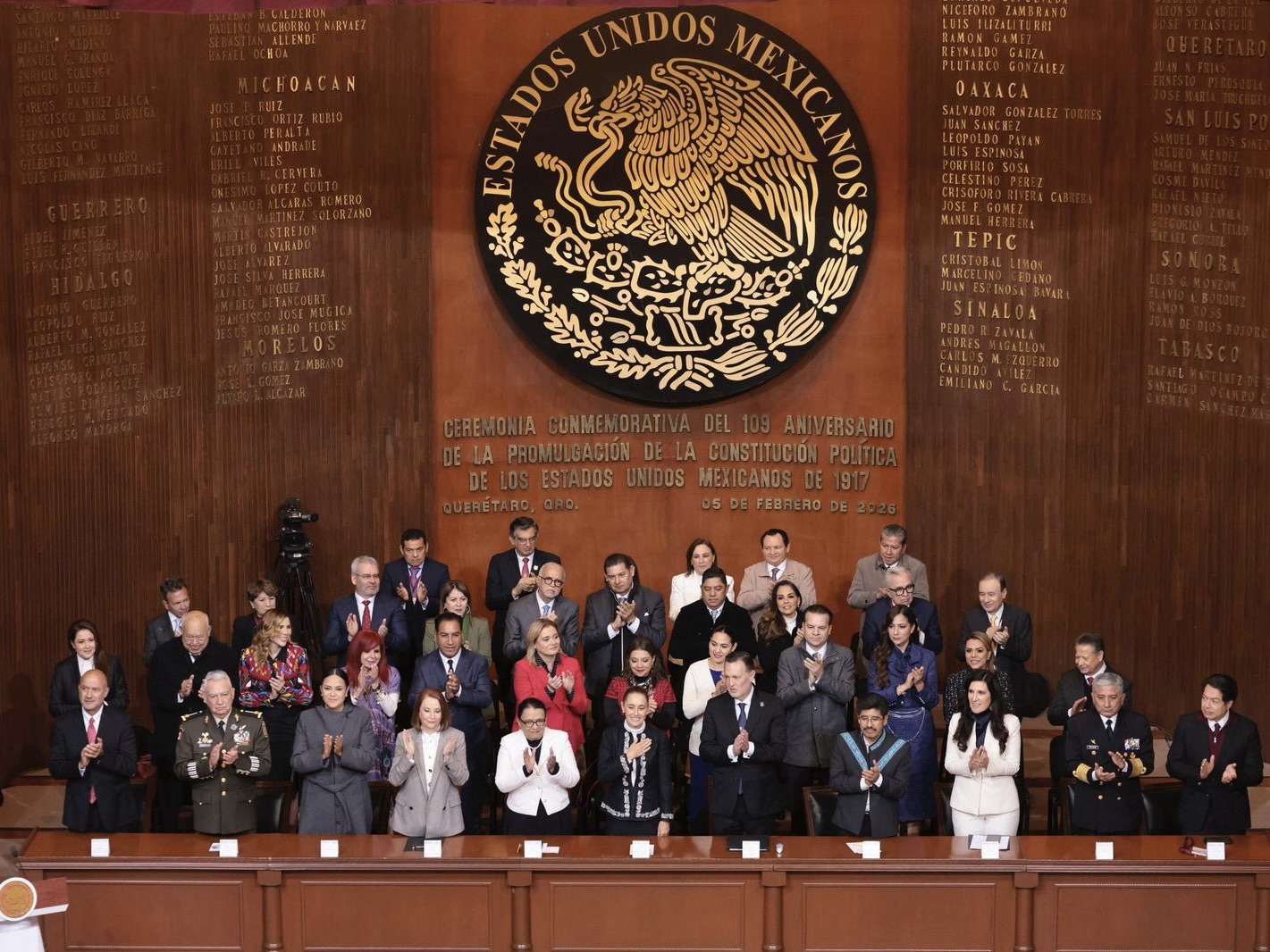 Querétaro, Querétaro, a 5 de febrero de 2026.- El gobernador Rubén Rocha Moya asistió como invitado por la presidenta de la República, Claudia Sheinbaum Pardo, a la ceremonia para conmemorar el 109 Aniversario de la Constitución de 1917, que tuvo lugar en el Teatro de la República, en el centro histórico de Querétaro. El mandatario […]