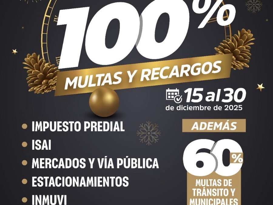 Culiacán, Sinaloa; diciembre 15 de 2025.- El Ayuntamiento de Culiacán anuncia descuentos del 100 por ciento en multas y recargos del impuesto predial, así como estímulos adicionales en diversos...